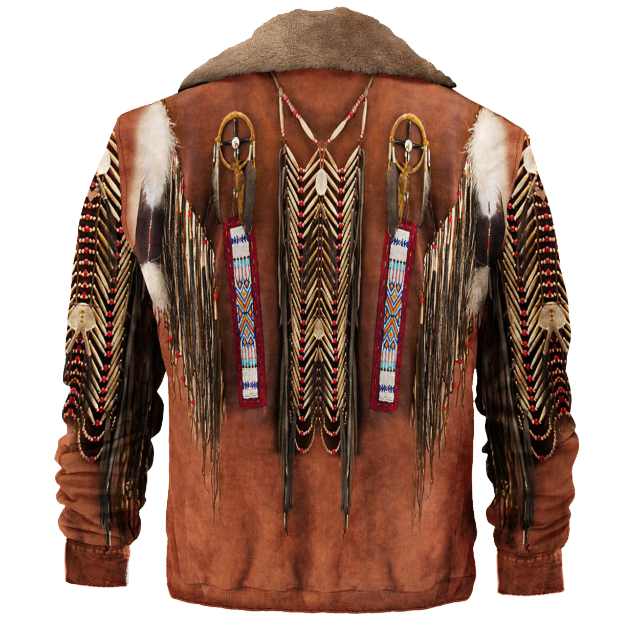 Retro American Western Ffeather Fringed Denim Jacket Print Unisex Deluxe Outerwear