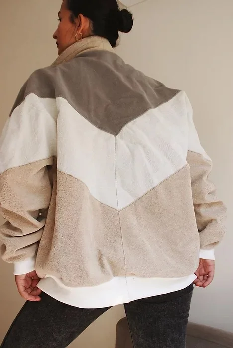 Mens Winter Vintage Patchwork Polar Fleece Jacket