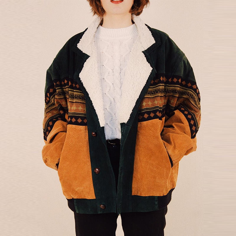 Vintage Splicing Loose Printed Color Jacket