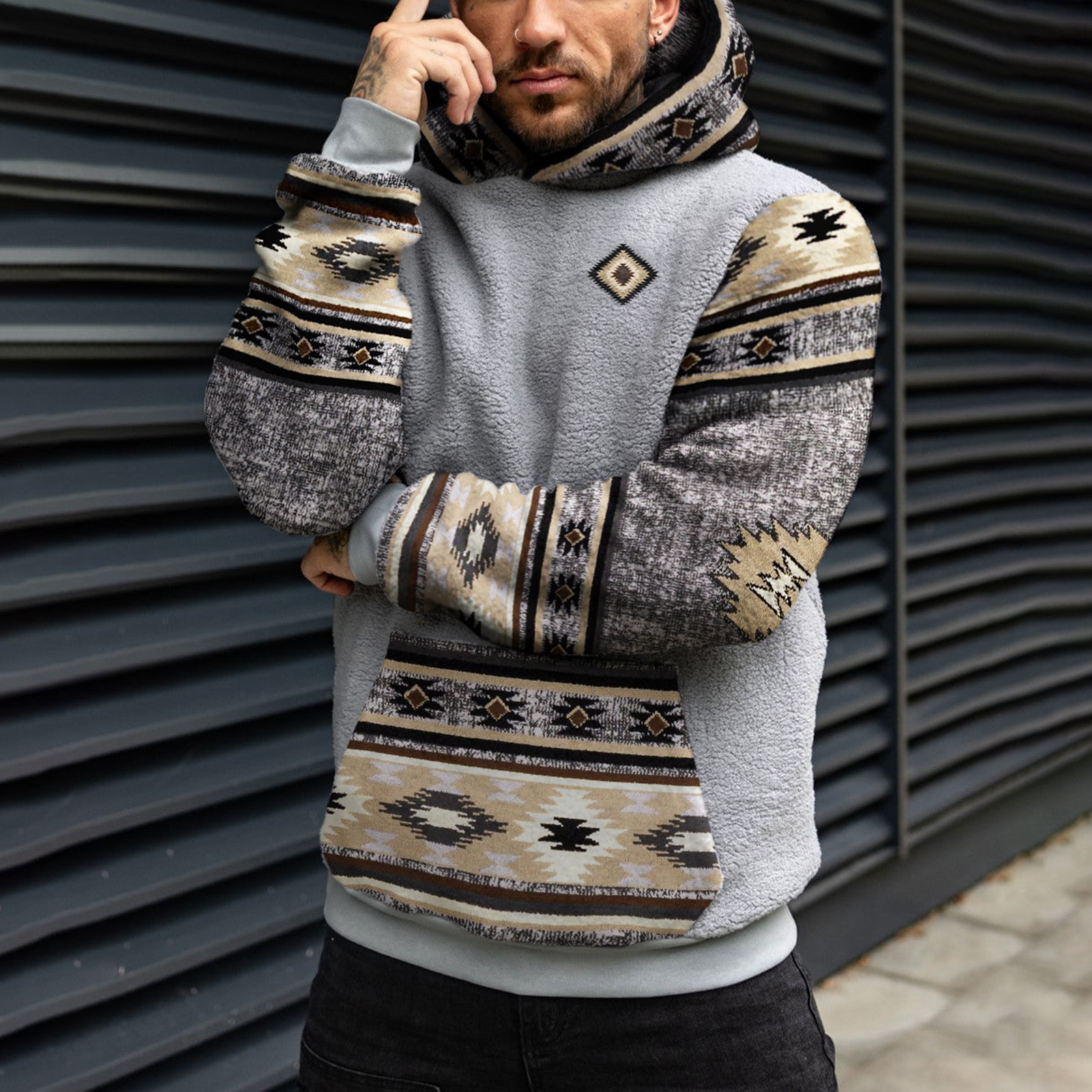 Retro Men’s Casual Ethnic Geometric Print Sherpa Hoodie